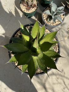 この写真を見ると鉢に対してアガベのほうが大きく成長しているのがわかるよね。