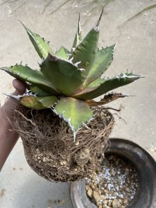 アガベの鉢増しと根の整理ついて勉強になったね。